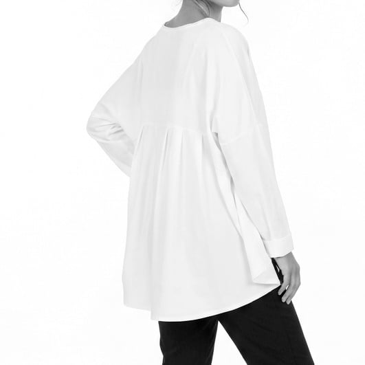Samarreta ampla de bambú i frunzit posterior de popelin blanc. Talla única (38-44).